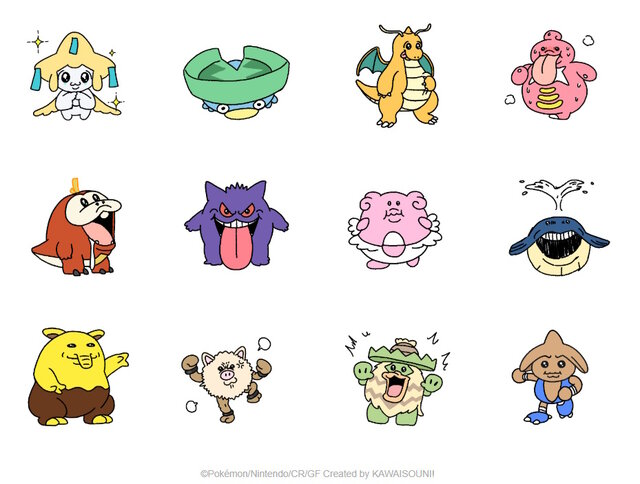這次合作繪製的寶可夢們都用動畫方式呈現,變得既萌又有點搞笑,全都帶著「可哀想に!」特有的圓滾滾+無奈可愛風格。
