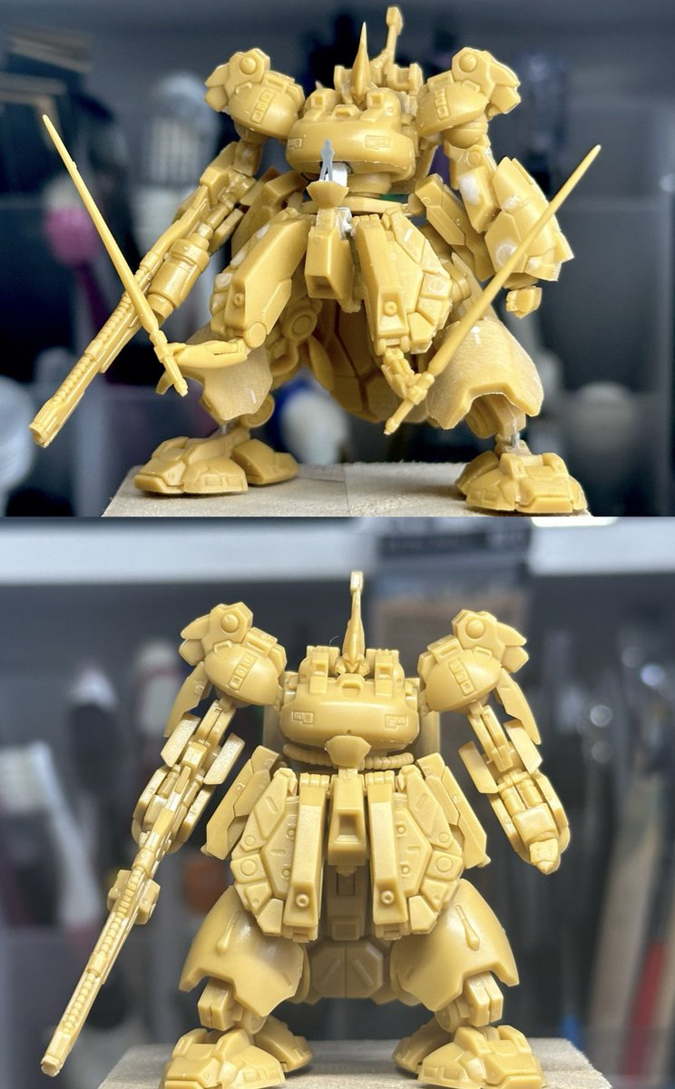 推主 paptimus hirocco 本身就非常擅長塗裝,尤其是細緻的細節刻劃更是他的拿手技術,他選擇這款是出自萬代食玩系列『GUNDAM ARTIFACT』第五彈的商品,特色是只有 5.5 公分高,但細節精緻到不可思議。