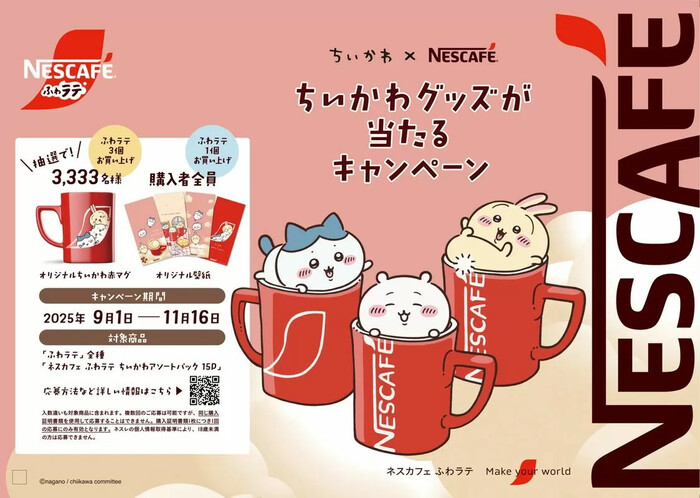 官方今日 ( 8/27 ) 宣布和「Nescafé 雀巢咖啡」合作,推出 「雀巢咖啡 ふわラテ 吉伊卡哇限定綜合包」,將在 2025 年 9 月 1 日 起限量發售。