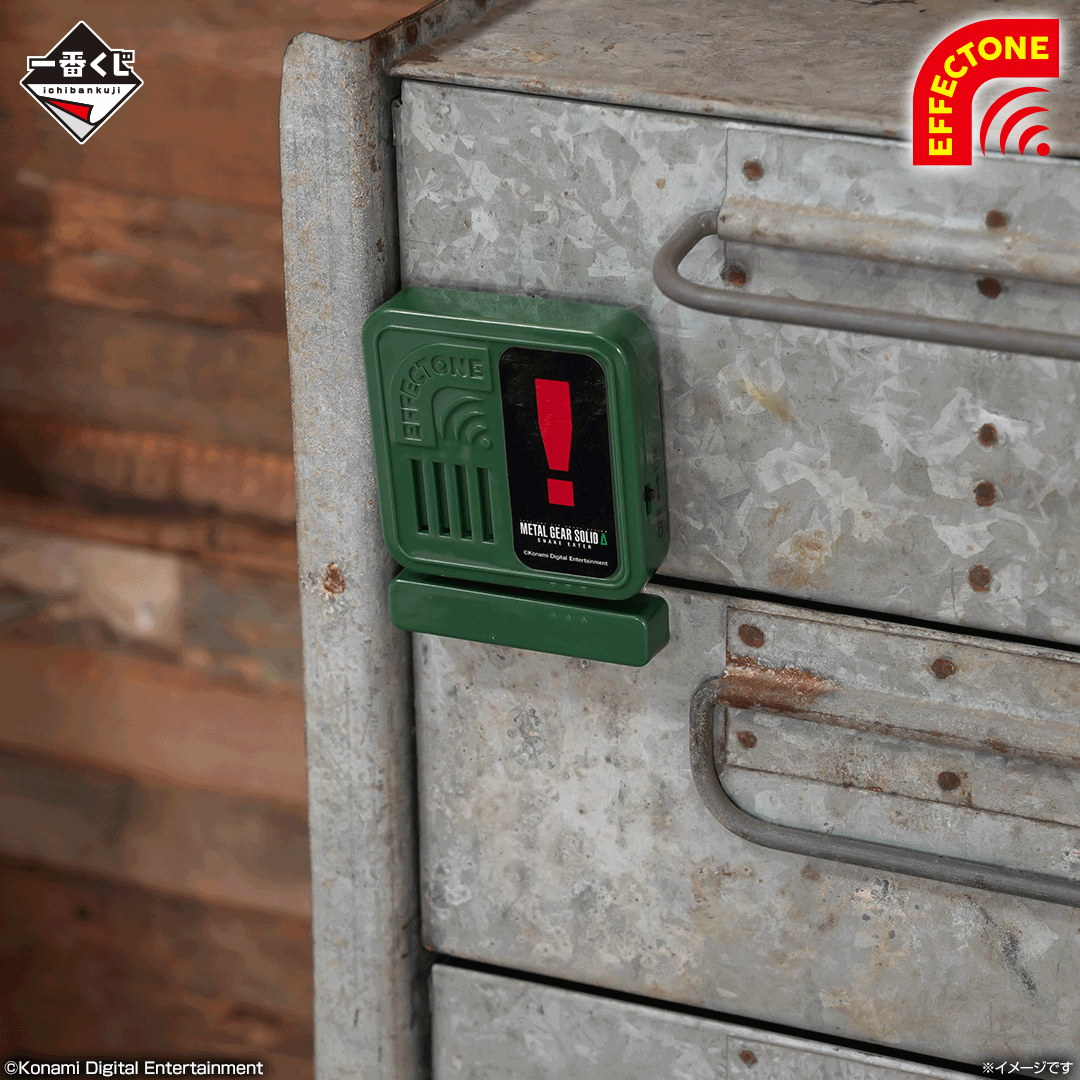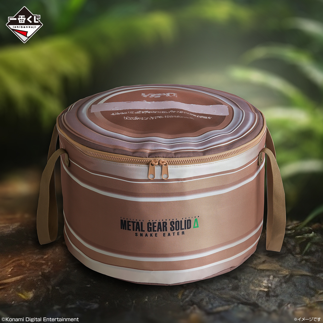 「一番賞 METAL GEAR SOLID Δ: SNAKE EATER」,共有 A ~ G 賞+最後賞、雙重中獎機會的豐富獎項,非常精彩有趣!內容有 A 賞「潛入式紙箱衛生紙盒」,固蛇已經偷偷潛入你的家中...除了紙箱上的圖案文字之外,還有不小心外露的下身!B賞為 40 公分的「軍糧罐頭造型保冷袋」非常適合戶外活動補給使用,C賞更是有趣的「音效盒 Effector」,能搭配感應發出遊戲中被發現「!」與「?」的效果音~另外還有D賞「名台詞歌留多(卡牌遊戲)」、E賞「迷彩生存手帕」、F賞「文具」、G賞「透明文件夾&電影膠片風格書籤」!最後賞的「泡麵計時器」更是收錄有固蛇與醫護人員之間的無線電語音留言,以及固蛇的名台詞等音效,當作一般計時器也非常好玩!