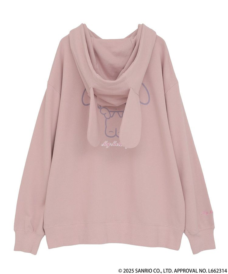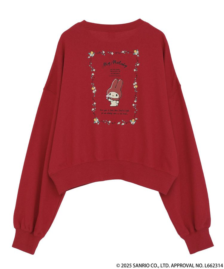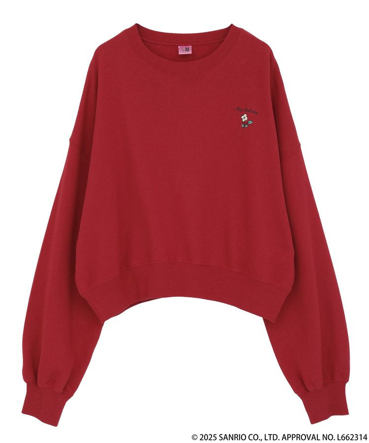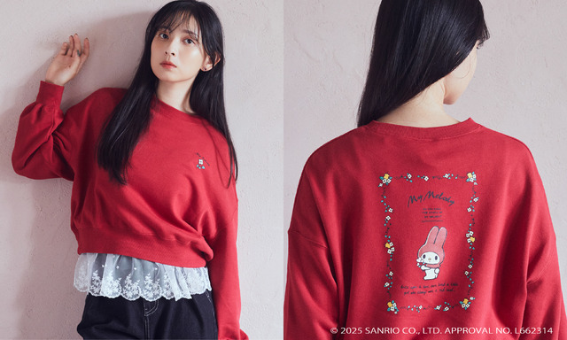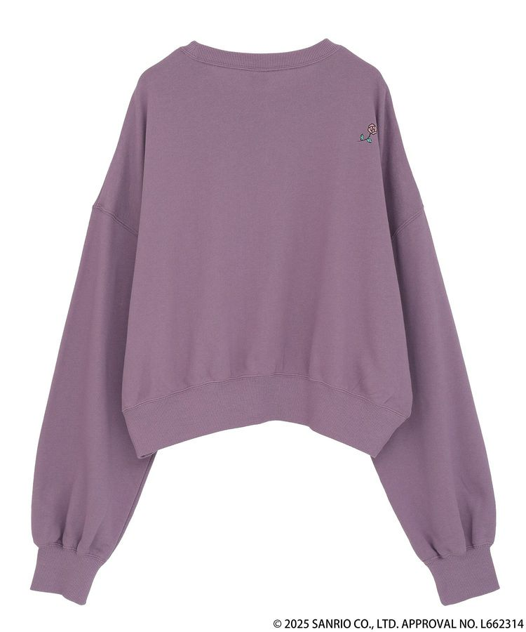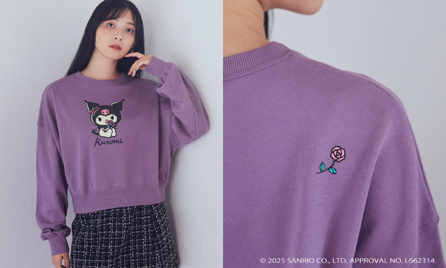 分別有酒紅色(美樂蒂款)、紫色(酷洛米款),版型採用落肩寬鬆的版型,短版的設計可以讓身形更加修長。美樂蒂款胸口與背面印上復古插畫,加上小巧花朵刺繡點綴,簡單好搭。酷洛米款則是正面大方印上圖案,展示你對角色的熱愛。