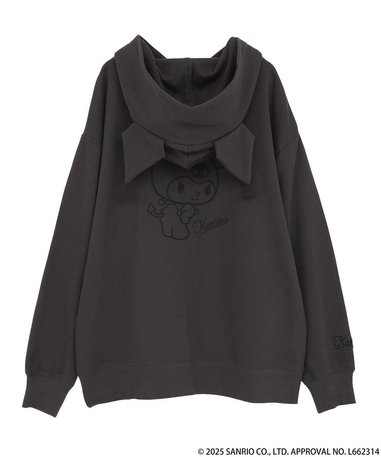 分別有粉色(美樂蒂款)、深灰色(酷洛米款),帽子上直接加上角色耳朵,正面印有音符&骷髏,背後還有角色大圖。