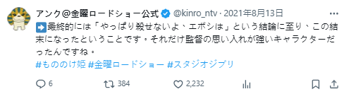 不過看得出來,對於黑帽大人這個角色,當初吉卜力團隊的確也有爭論,雖然最後是被宮崎駿導演執意讓她活下。但這個角色的地位,似乎也可以看得出宮崎駿看重的程度吧。