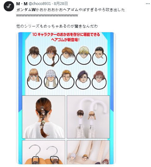 沒想到今年逢動畫播出 30 周年的《新機動戰記鋼彈W》,也趁勢推出了一系列的「大頭髮圈」,讓不少網友嘖嘖稱奇,沒想到鋼彈也有這樣的東西可以出。