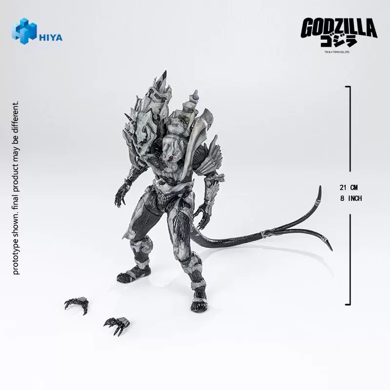 「EXQUISITE BASIC 怪獸X」無比例 8 吋可動模型,尺寸全高約 21 公分,還原在《哥吉拉最後戰役》中的經典造型,如骨骸般的外露骨骼,凸顯了其作為終極武器的威懾力,鋒利的鎧甲與紅色的雙眼散發著令人生畏的威脅感。身軀修長的比例、滿佈利牙的大嘴以及外星生物般的利爪等細節皆仔細刻劃。高度靈活的關節設計,可賞玩各種動態姿勢;尾部使用包膠鐵絲,能隨著動作自然地擺動。另外附有一對可替換的手勢零件,重現與哥吉拉激烈的戰鬥場景!