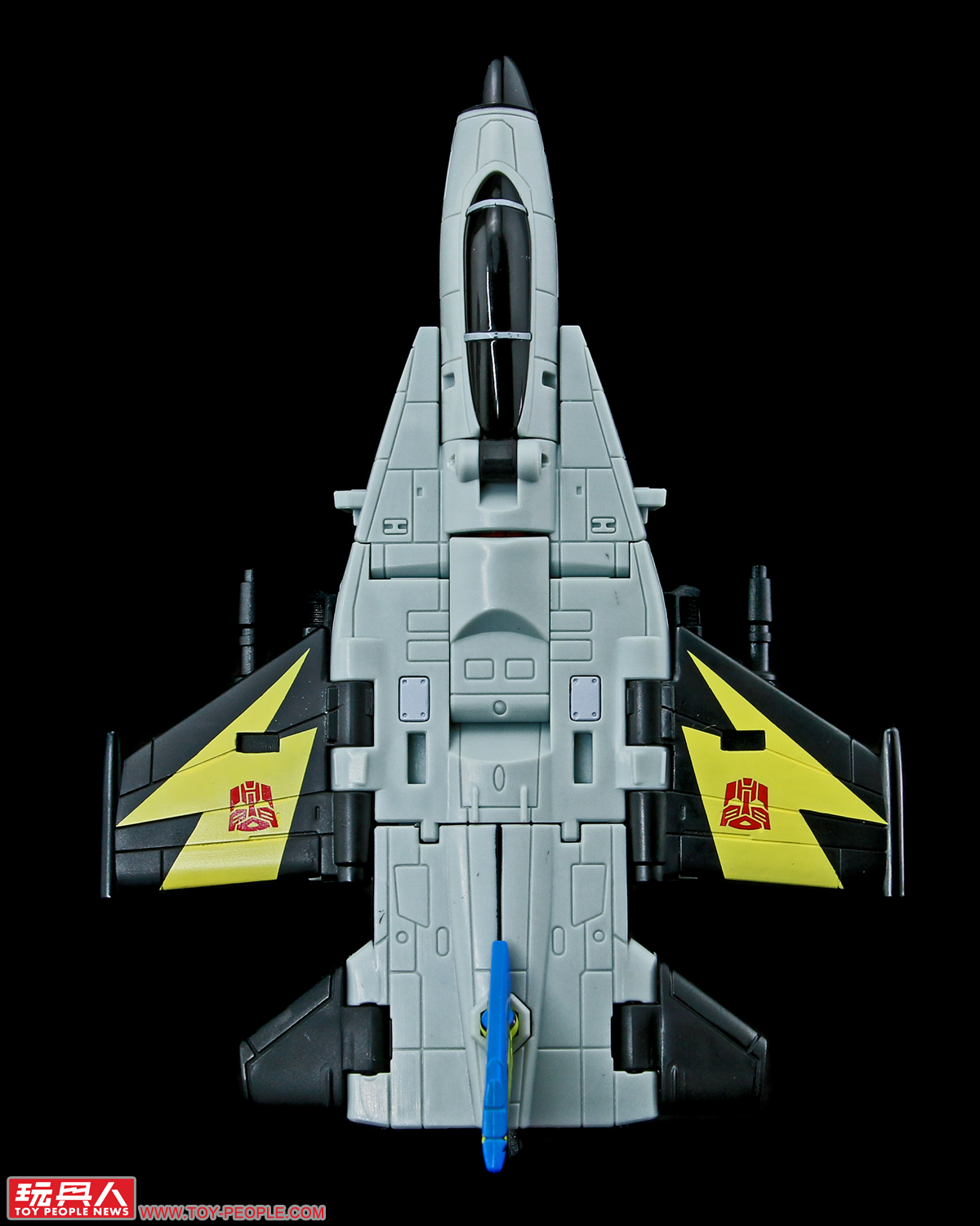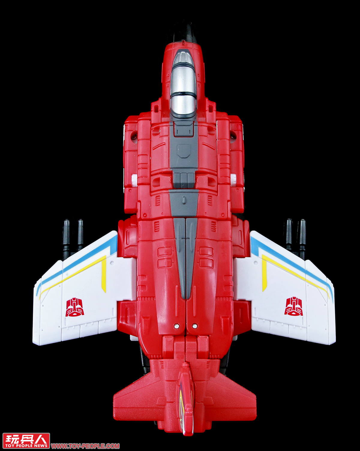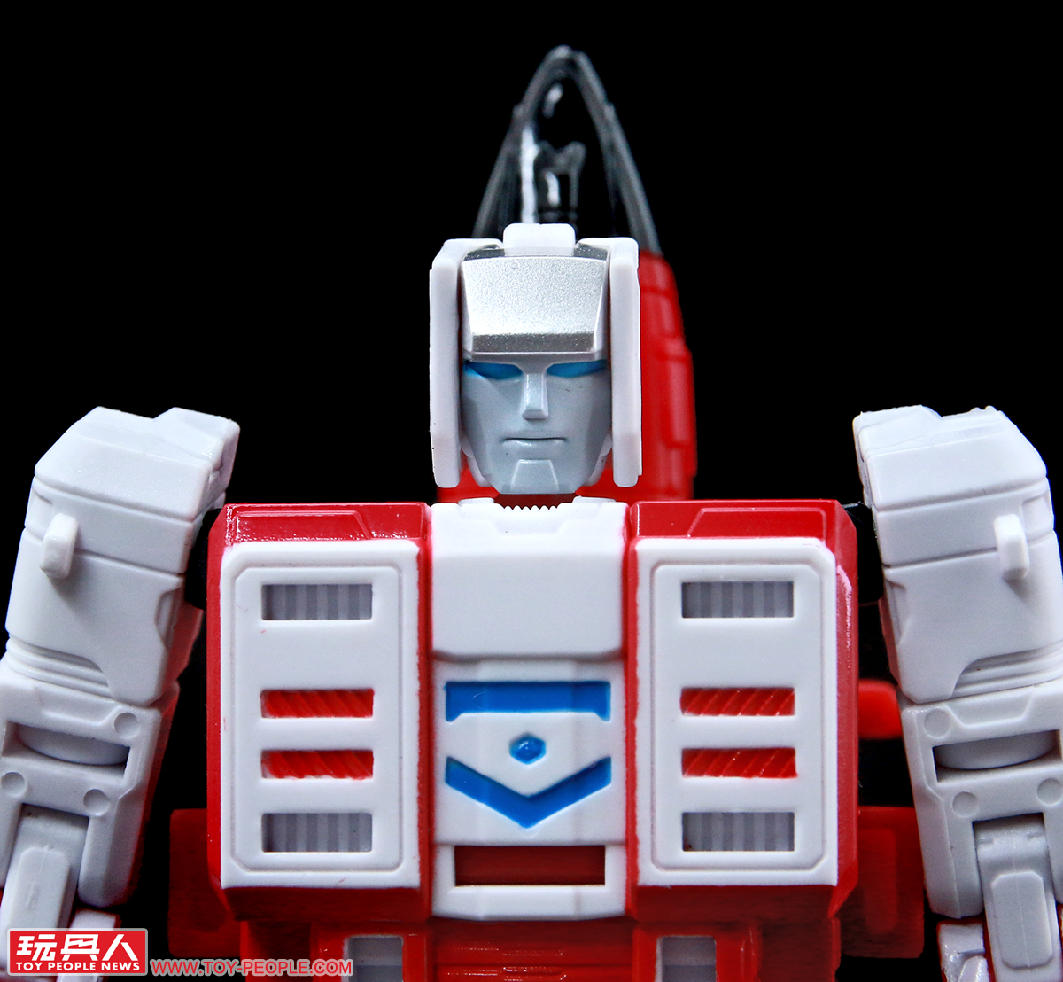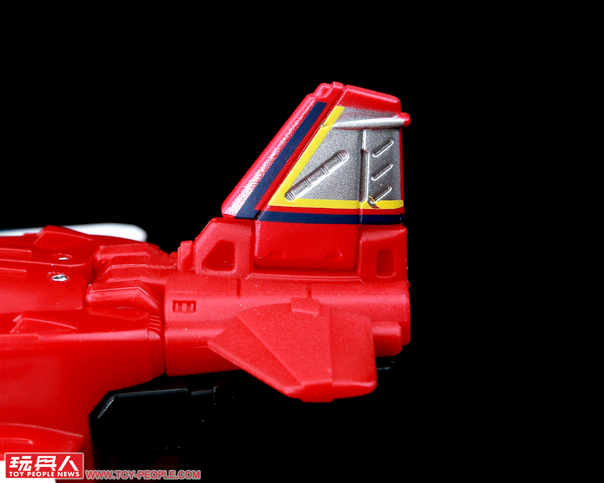 ▼載具模式,變形為擬似F-4的戰機造型,並還原了G1經典的紅白配色。