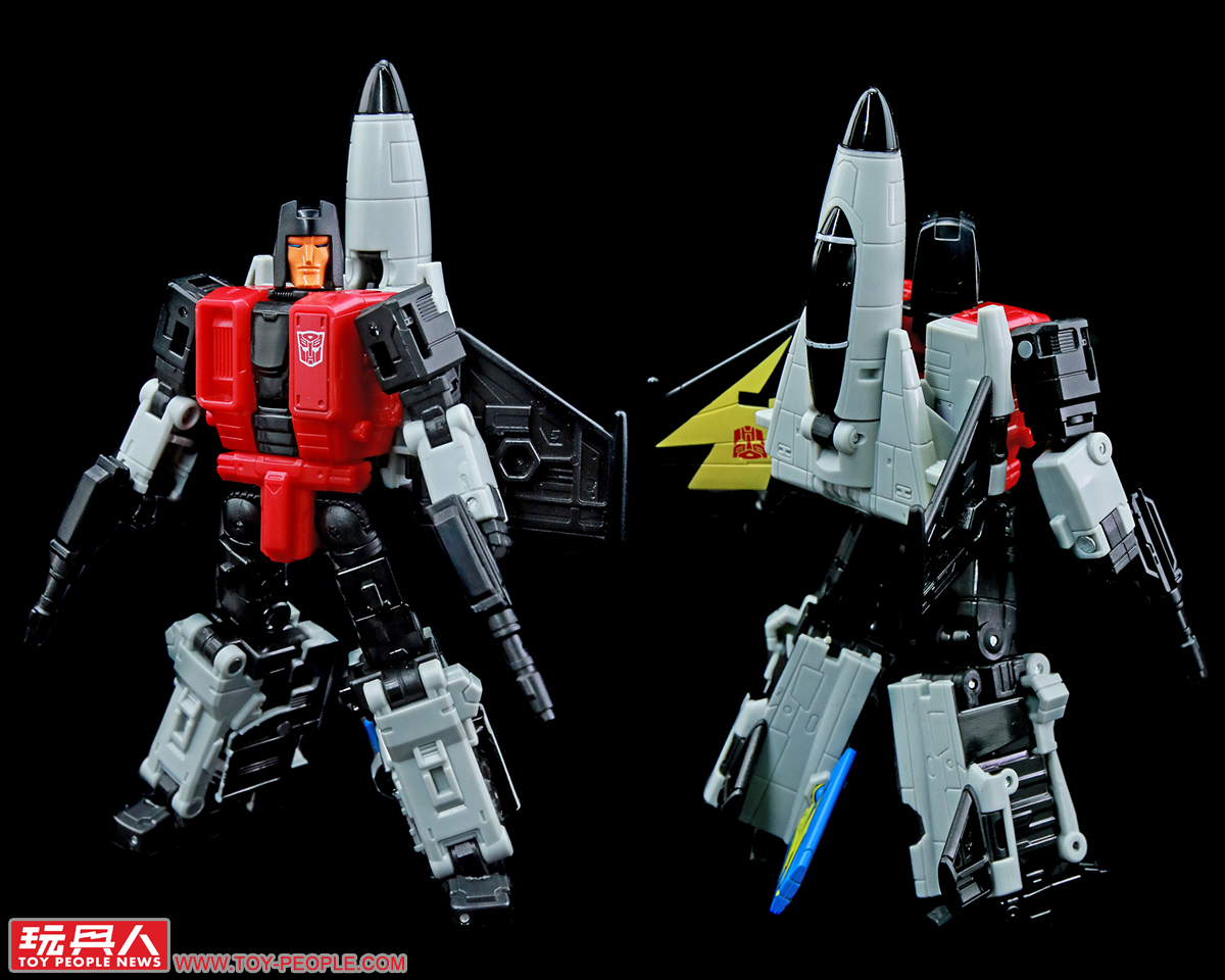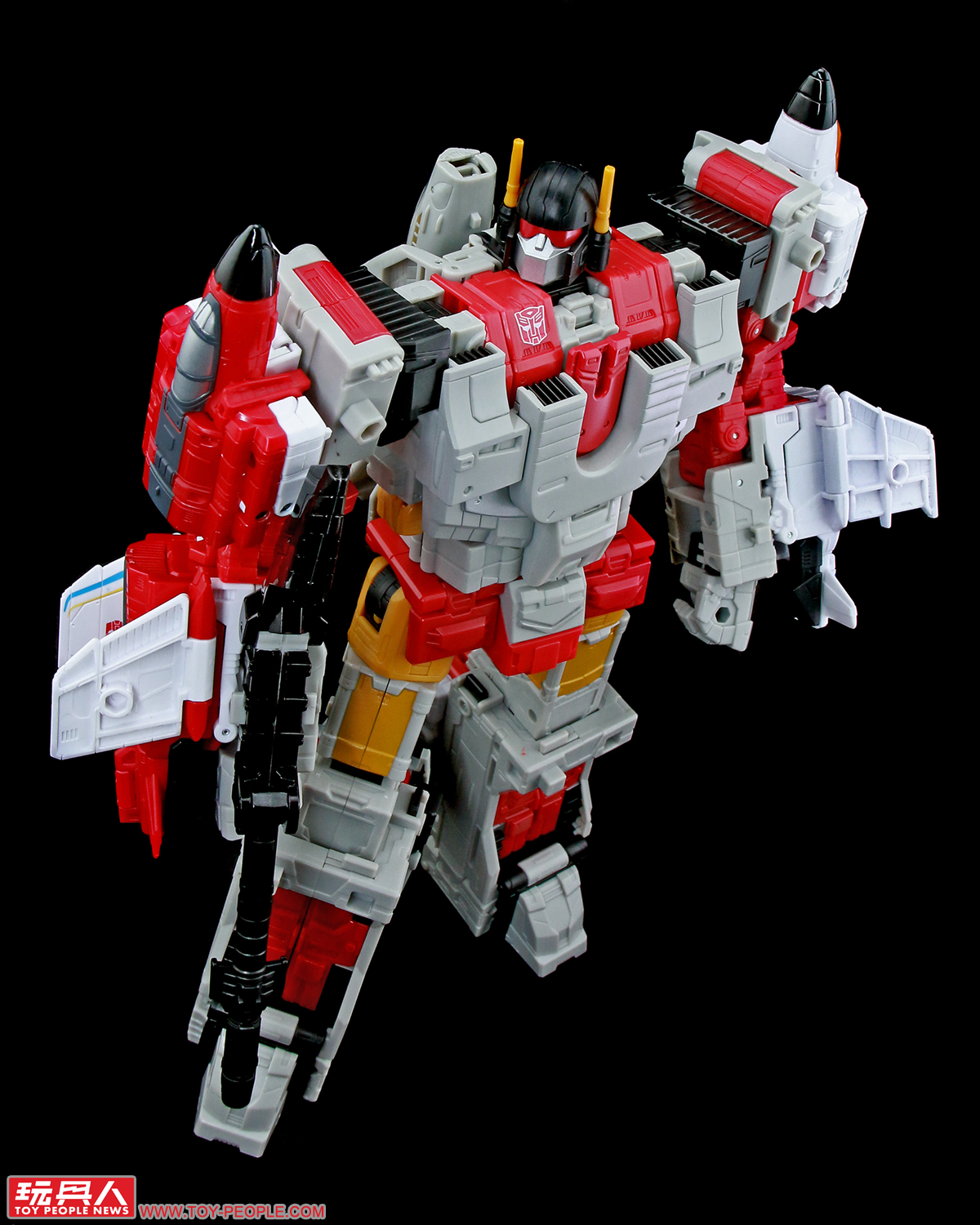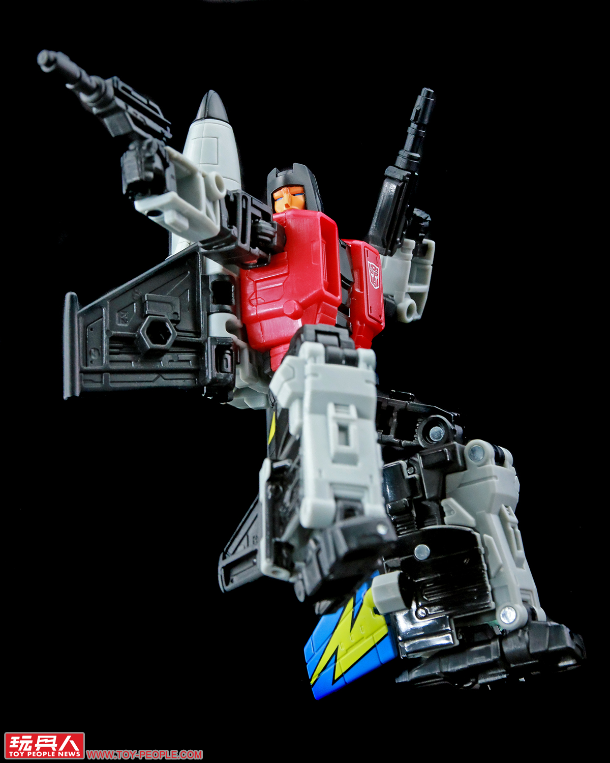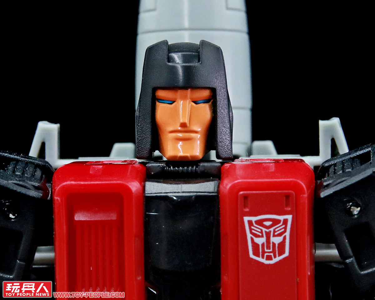 ▼載具模式,變形為擬似F-4的戰機造型,並還原了G1經典的紅白配色。