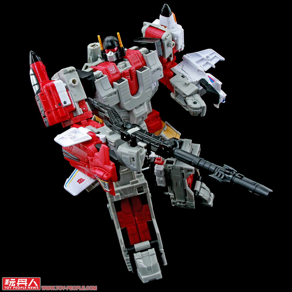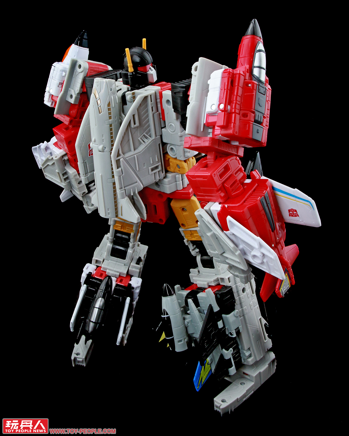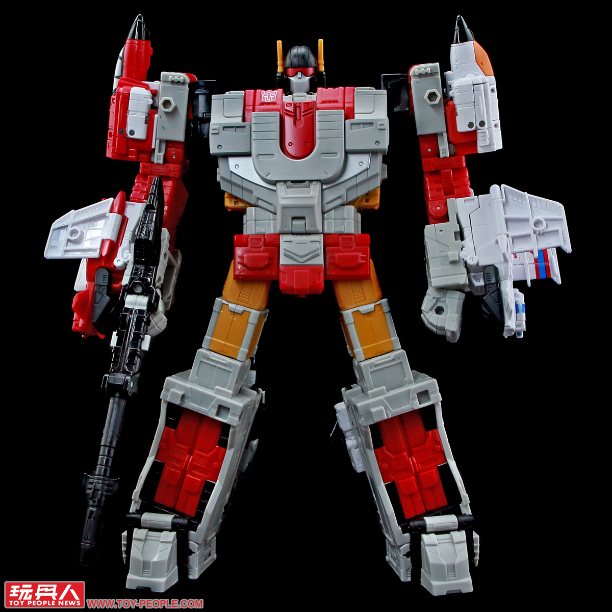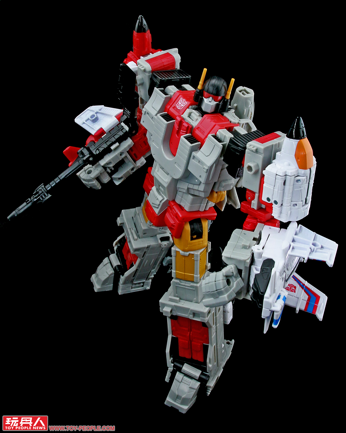 ▼載具模式,變形為擬似F-4的戰機造型,並還原了G1經典的紅白配色。