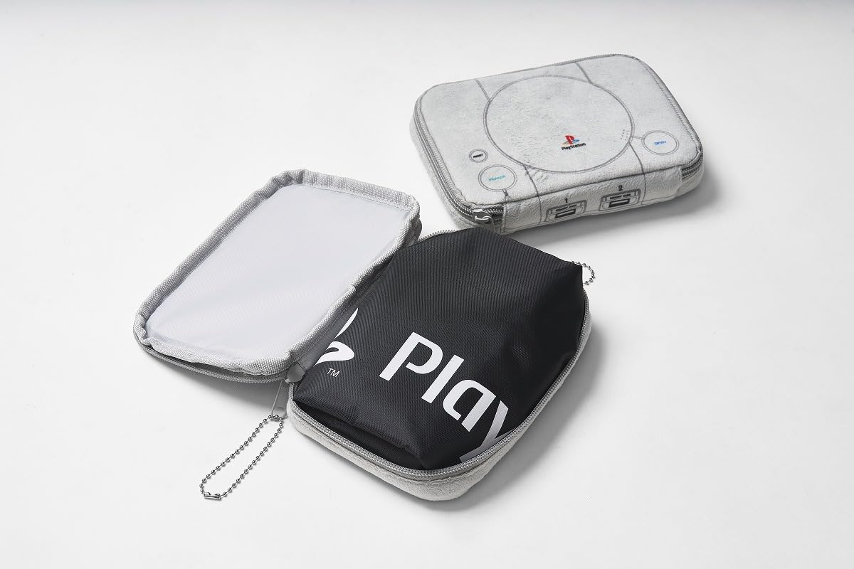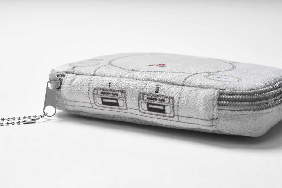 收納包外層是絨布材質,手感軟綿綿,還有拉鍊設計。外觀更是把當年 PS 主機的細節完整重現,包括手把插槽、記憶卡插槽、背面細節通通都有,細緻到不行!