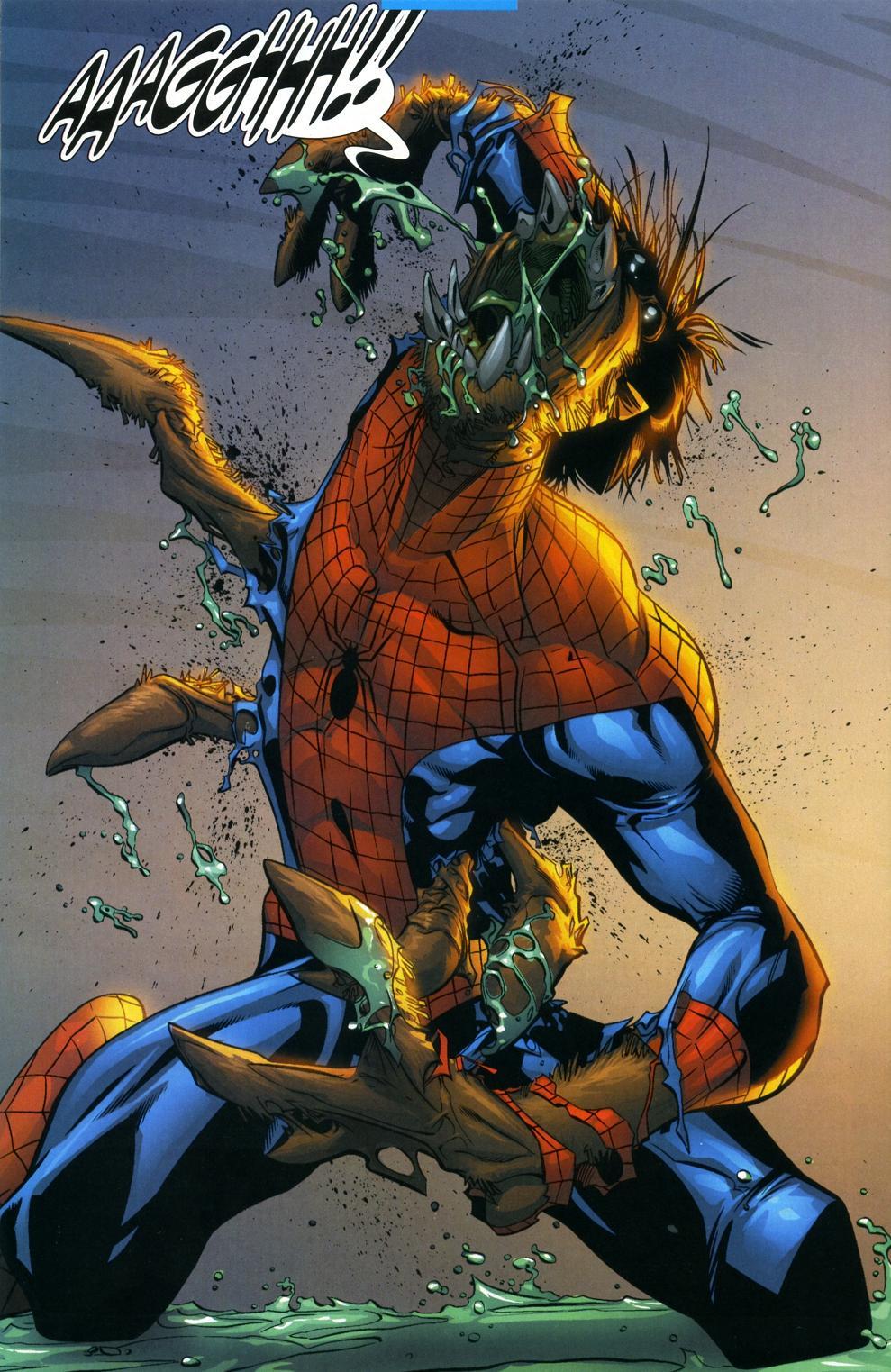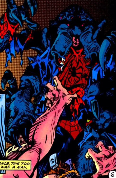 結果,蜘蛛人退化成一個更接近蜘蛛形態的怪物「人蜘蛛」,造型詭異而驚悚。這樣的設定正好契合加菲所期待的「奇怪又獨特」故事線。