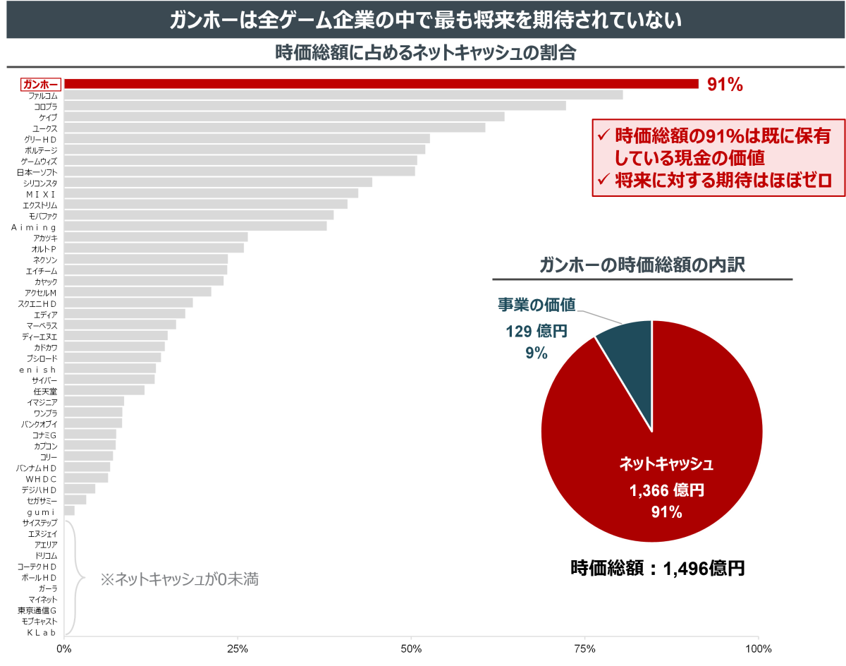 並且指出,GungHo 目前 91%市值來自現金(淨現金),顯示市場對未來營運前景缺乏期待。除了《龍族拼圖》外,公司多年來投入的資源與開發計畫幾乎沒有誕生新爆款,導致市場所給予的評價極低。Strategic Capital 甚至直言:「只要經營高層不換,市場對GungHo的折價評價就不會消失。」