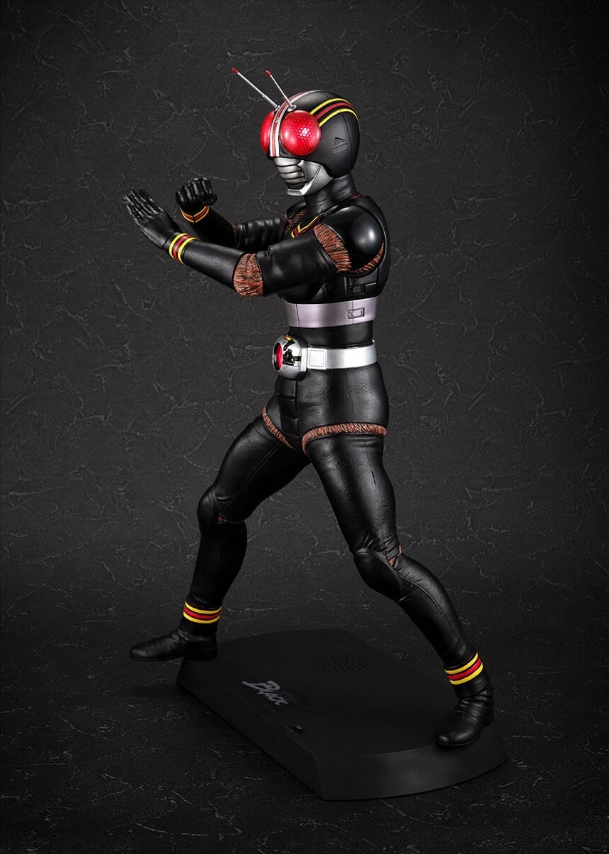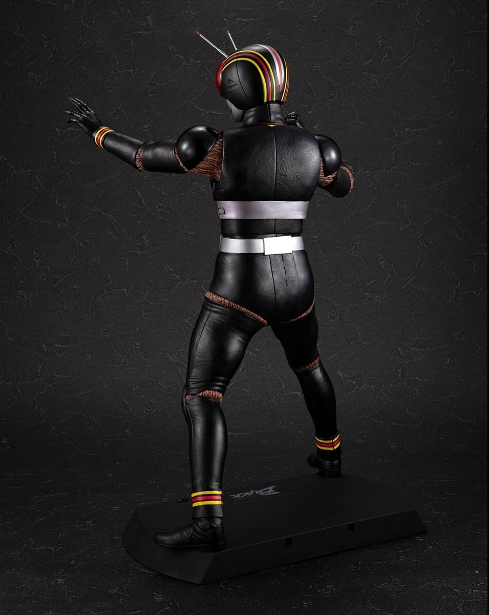 本次的 UA Ultimate Article 假面騎士 BLACK 高約 40 公分,以充滿魄力的大尺寸完美重現 BLACK 戰衣的每一處細節,精緻的雕刻還原盔甲表面的紋理與頭盔的造型,可以透過更換手臂的替換零件變換姿勢,底座部分還附有標準字及 BLACK 標誌兩種貼紙款式讓各位玩具人可以自由選擇展示!