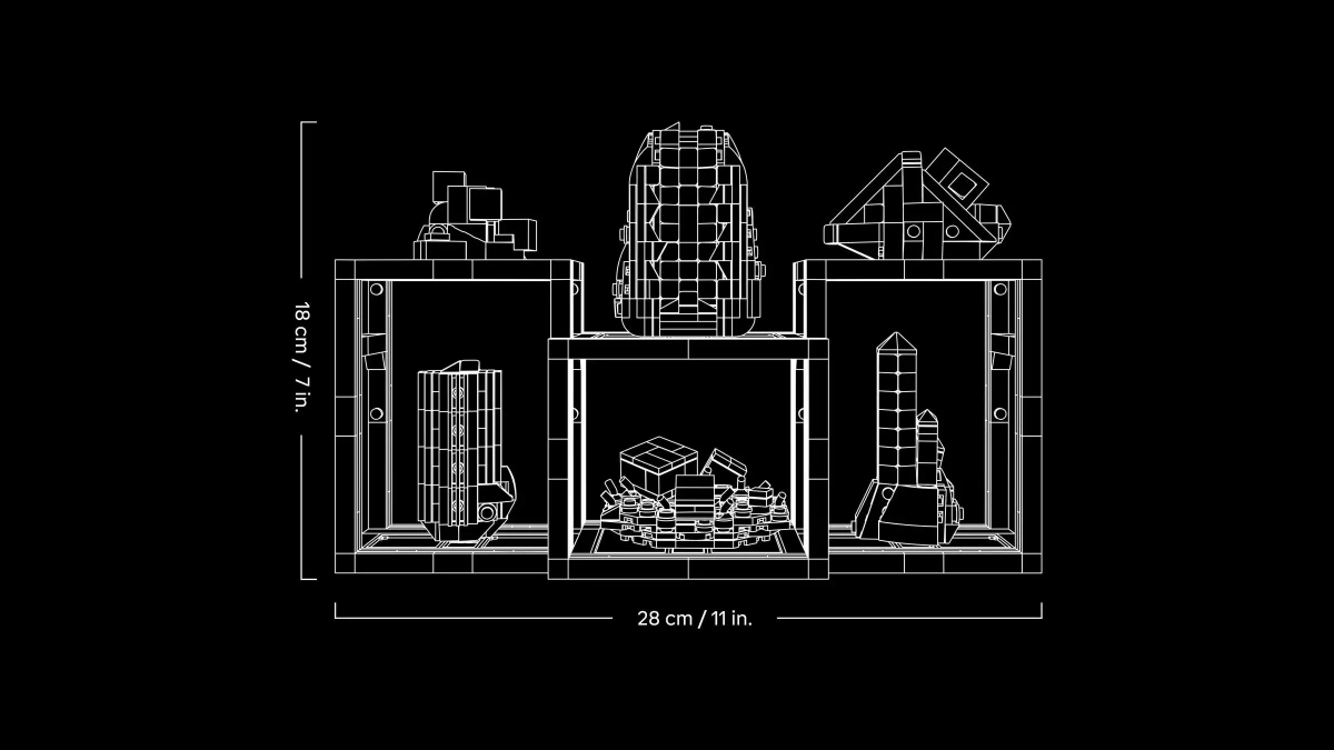 這款由 880 片零件組成的「礦物集錦」包含了六種磚拼形式的礦石與仿木質感的展示架,組完之後整體長度來到 28 公分,但你也可以將展示架分成三個單位個別獨立並替換礦物的位置,隨心所欲地展示。本次的六種礦石展品包含黃金黃鐵礦(golden pyrite)、紫水晶(purple amethyst)、藍螢石(blue fluorite)、西瓜碧璽(watermelon tourmaline)、紅紋菱錳礦(reddish-pink rhodochrosite)跟柑橘石英(tangerine quartz)。