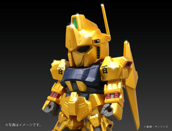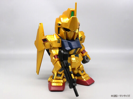 「巨無霸軟膠模型 SD百式(金色限定版)」基於過去推出的一般版修改而來,全機裝甲基於動畫設定施以豪華的金色塗裝,色澤比起塑膠成型色的一般版更具金屬質感,同時外盒包裝也是運用黑色、金色重新設計的限定規格。