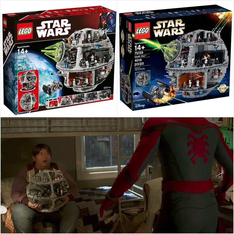 ▼ 其次是過去曾被許多認定為終極收藏的 10188 死星(2008年)使用了3083塊磚、收錄24個人偶;後來又推出升級改版的 75159 死星(2016年)使用了4016塊磚、收錄27個人偶。 2017 年的《蜘蛛人:返校日》電影中,彼得的摯友奈德曾一直不斷邀請彼得一起組裝死星,他提到那組LEGO有3083塊磚(舊版10188),但是他拿給彼得看的白卜庭皇帝卻是膚色版本(新版75159)