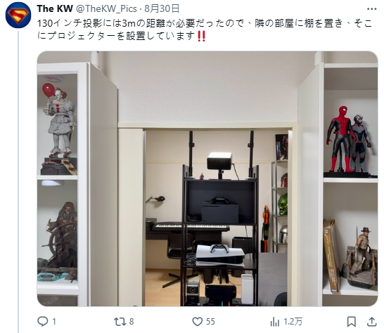 有位日本推主 The KW 最近在 X 分享了他的「窮人版家庭電影院」,在家中約 3 坪的小房間打造出一個沉浸式的「迷你家庭電影院」,結果意外在網路上爆紅!