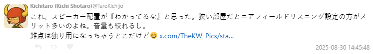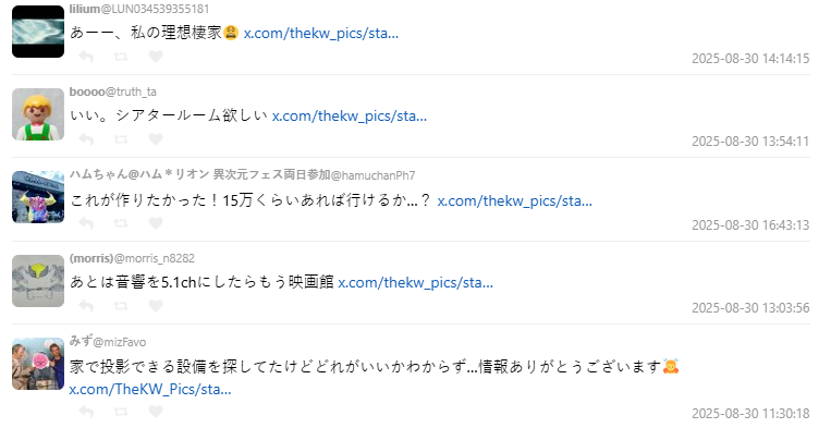 這樣的布置立刻引發網友熱烈迴響。有人驚呼「這就是我的理想房間」,有人直呼「只要 15 萬日圓左右就能打造」,甚至有網友開玩笑喊:「這根本就是 IMAX!」也有網友建議:「如果升級到 5.1 聲道,根本就跟電影院一樣了。」