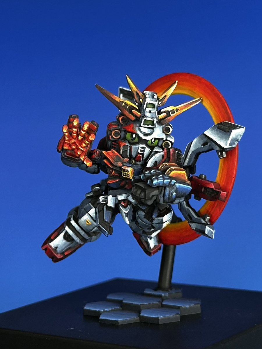 ニコボル表示,如果能讓人覺得這隻神鋼彈的「石破天驚拳」真的在爆熱發光,那自己就超開心了~眼睛的部分則是照自己喜好特別畫上去,喜歡 SD 鋼彈這種帶點可愛的風格。