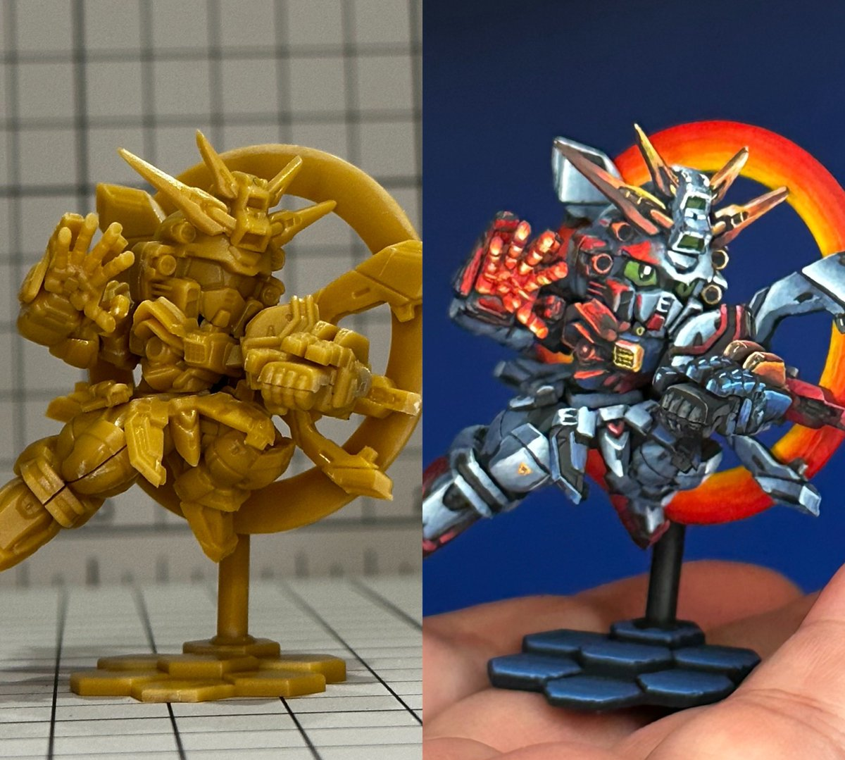 這次就是食玩案例,先前介紹過塗裝「吉姆狙擊手」老模型的模型好手ニコボル(@nicovol48),再次展現好手藝,不過他嘗試的是萬代食玩『GUNDAM SUPERIOR DIFAIN』系列的「神鋼彈」,以 SD 鋼彈的造型塗裝出絕佳的效果,讓不少網友讚賞。