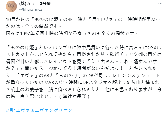 這件事情網路上引發熱議後,讓 khara 社長庵野秀明也發文解釋 :