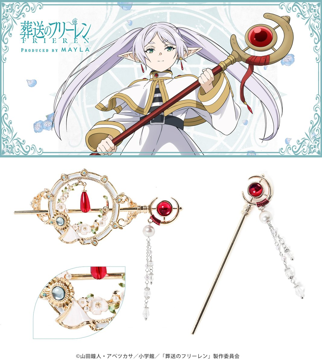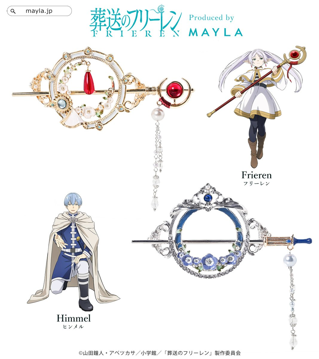 近日宣布與明年一月即將開播第二季的動畫的作品《葬送的芙莉蓮》合作,推出以芙莉蓮 & 欣梅爾為主題的聯名髮簪。售價為 10,780 日圓,將於 9/9 起於 MAYLA 官網預購。