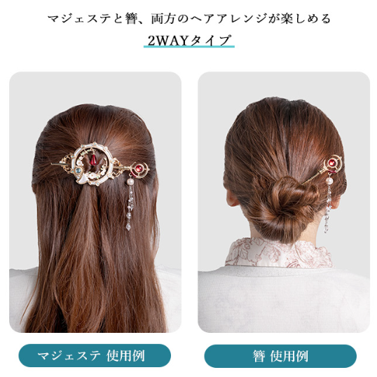 不僅可以作為單獨的簪使用,也可與飾品組合成優雅的華麗髮飾。一插入頭髮,無論是短髮或長髮,都能瞬間增添華麗感,完美再現角色的精緻氛圍。