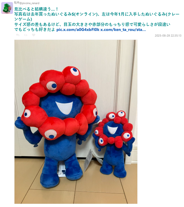 另一位網友則指出,去年線上商店買的版本和今年在夾娃娃機拿到的,眼睛大小和紅色部分的「Q彈感」差異明顯,「新版可愛度直接大升級」。