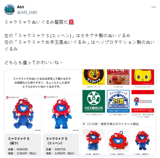 「2025年大阪世界博覽會」作為吉祥物的「脈脈」(ミャクミャク),剛公布時被罵翻天的「脈脈」現在人氣超旺!不只周邊商品一賣就斷貨,即使世博將在 10 月底落幕,但這個吉祥物確實也讓世人留下深刻印象。