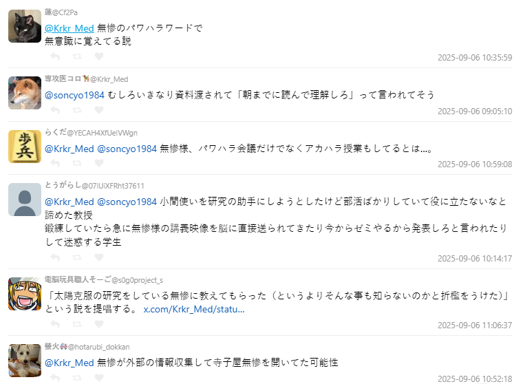 結果這則貼文,引發了許多網友發想腦補,認為很可能是無慘丟資料給部下「今晚讀完明早報告」,甚至是開私塾來指導這些上弦鬼,「不只會開慣老闆霸凌會議,還會開學術霸凌的課。」,鐵定是血汗指導教授。