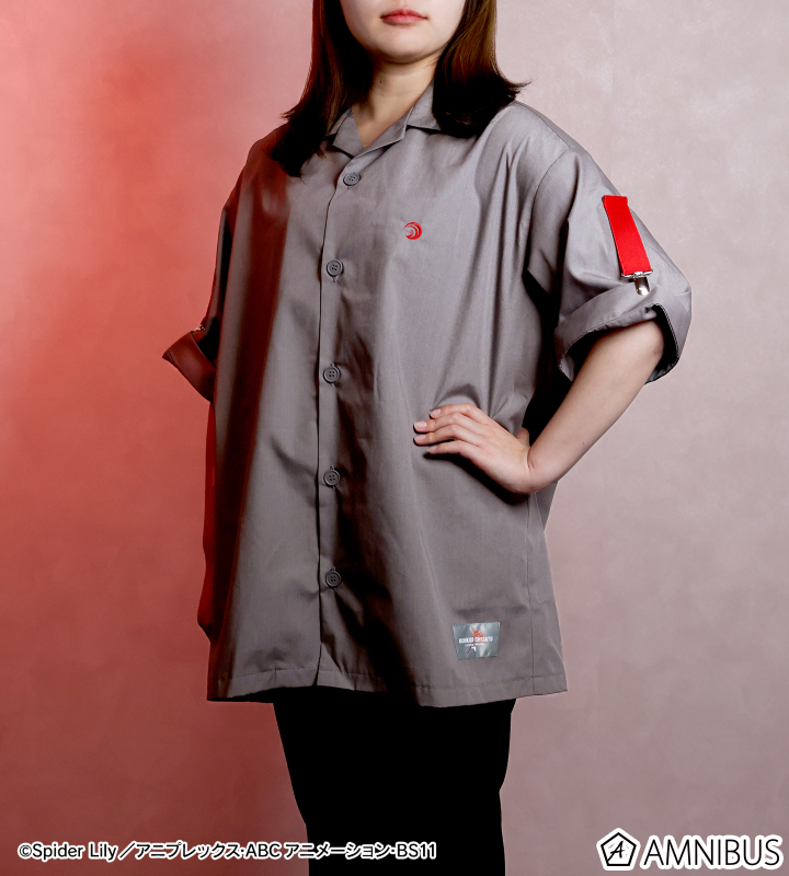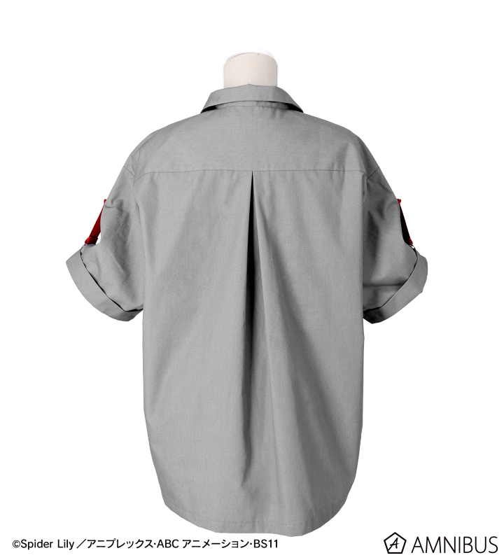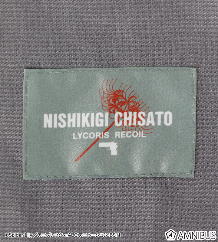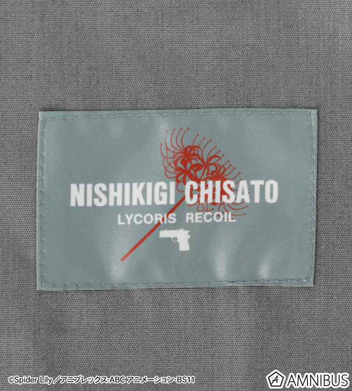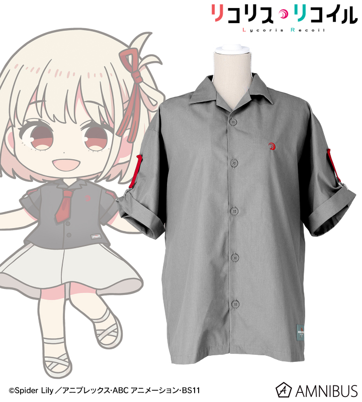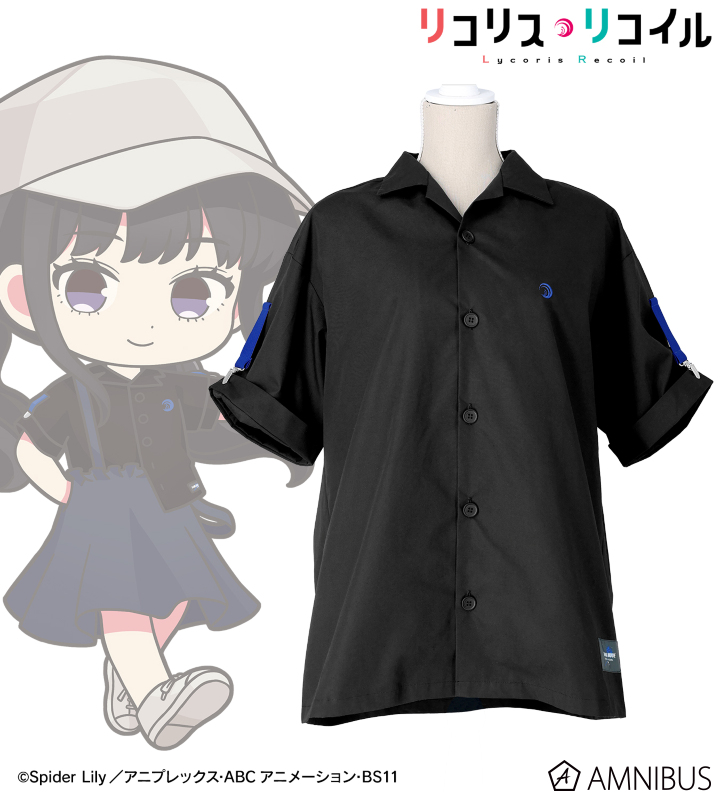 採用跟長袖款相同的布料製成,袖子上裝飾了象徵千束配色的袖扣環,胸口則繡上了「Lycoris」圖騰。一樣有千束跟作品標題的原創標籤。袖子上的金屬扣件可以調整袖長,替穿搭增加變化。