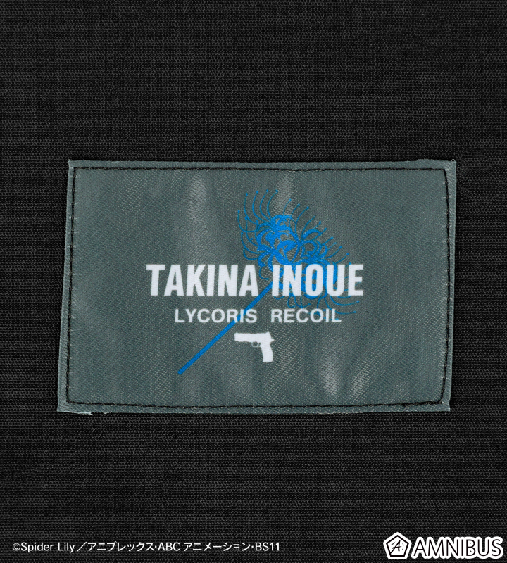 跟千束款設計大抵相同,改為黑色配藍色的款式,細節上吊帶的調節環配色跟襯衫下擺改為藍色彼岸花,搭配「井之上瀧奈」名字與作品標題的原創標籤。