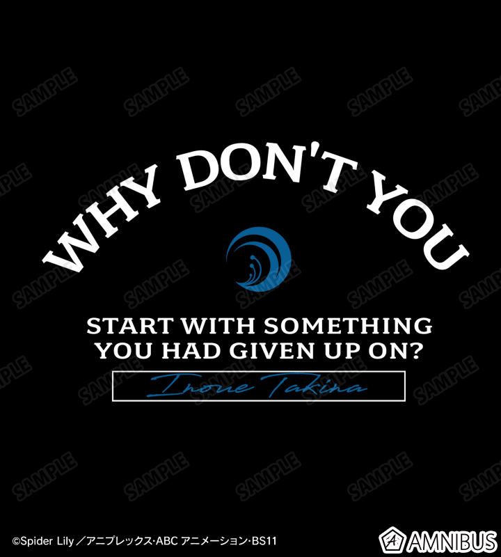 跟千束款設計大抵相同,改為黑色的款式,細節上吊帶的調節環配色跟襯衫下擺改為藍色彼岸花,搭配「井之上瀧奈」名字與作品標題的原創標籤。