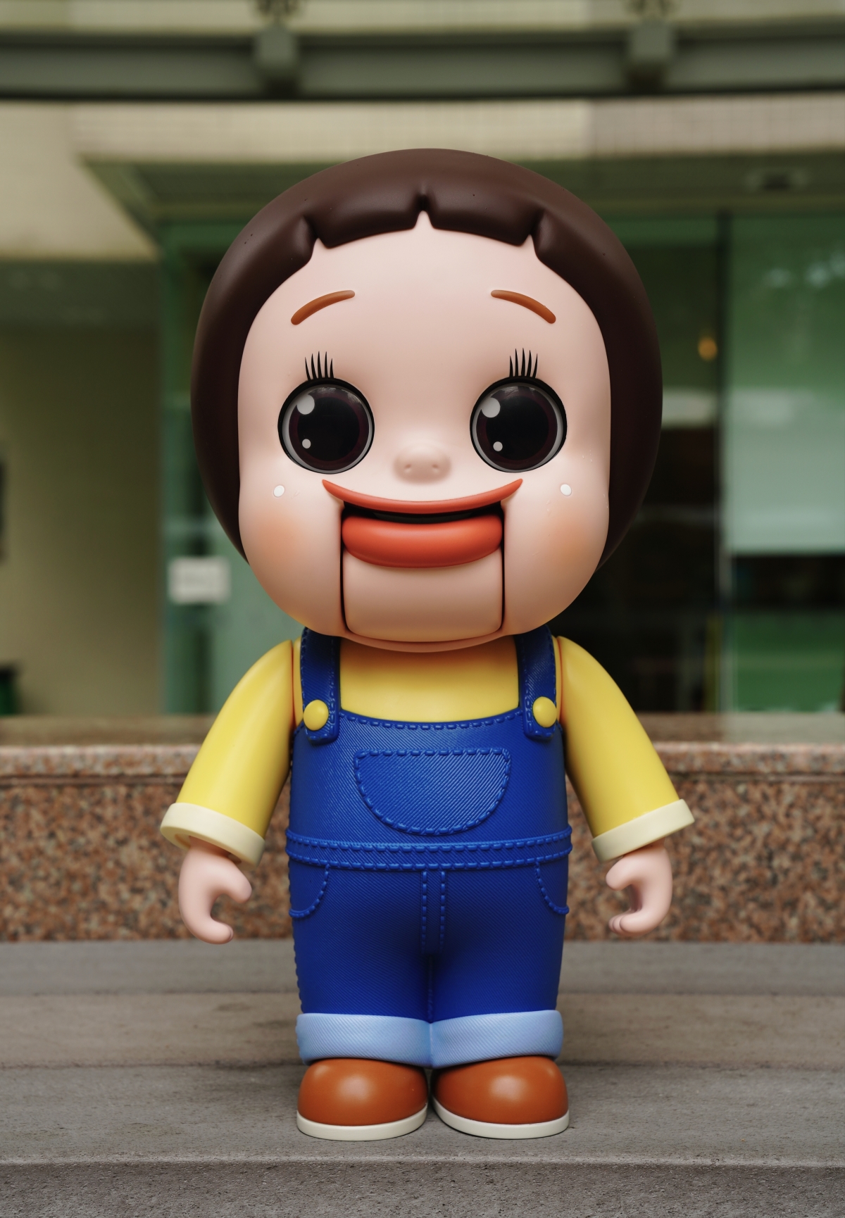 萬眾期待! 巨大化燦子人偶(展覽限定版)終於出現了!! 標誌性的黃色上衣與藍色工人褲造型,褲身加入虛線壓邊設計,呈現更擬真的衣物車線質感,細節更為豐富,帶來更高質感的整體外觀。頭部、嘴巴與雙手均可動,可輕鬆調整姿勢,增添趣味性與互動性,讓人偶不僅限於靜態展示,也能融入個人化場景擺設。有興趣的朋友千萬不要錯過!!