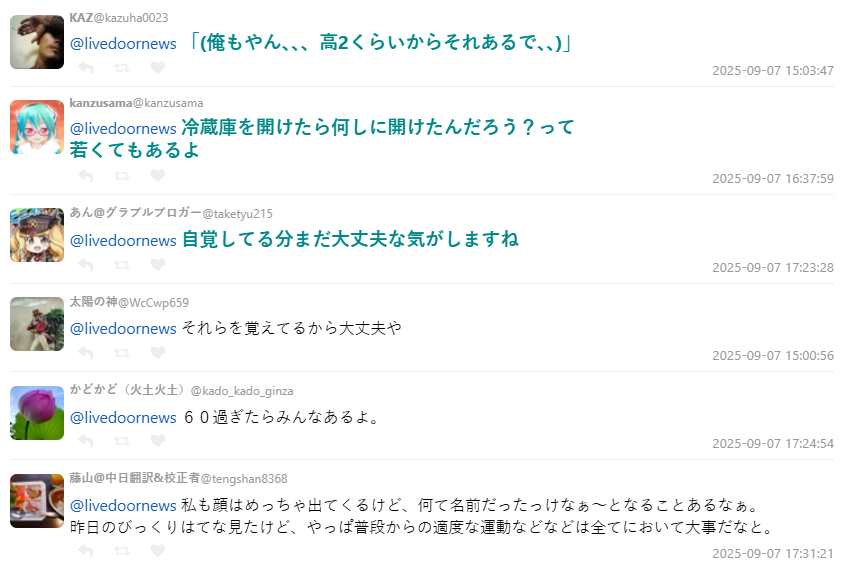有網友表示聽到塔摩利的自白「胸口一緊」,雖然他用幽默的方式談論,但「這就是任何人都會遇到的現實」。也有人提到,自己也常常打開冰箱卻忘了要幹嘛,「這種事年輕人也會有」。也有網友則認為:「他還能自覺就代表還算沒問題。」甚至有人安慰:「能記得自己有這些狀況,代表還算安全啦。」