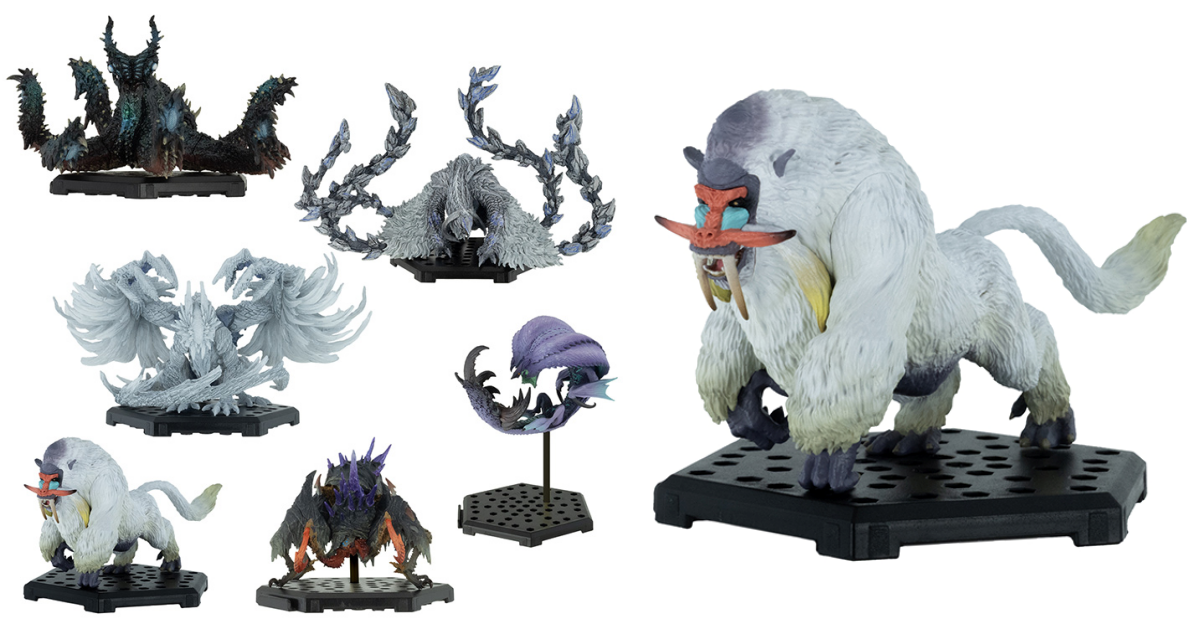 本次推出的『CFB Monster Hunter Standard Model Plus Vol.29』,以《魔物獵人 荒野》登場魔物為主,收錄有獄焰鱆、護鎖刃龍,雪獅子王、影蜘蛛、風鋏龍和白熾龍,將人氣魔物高品質立體化!複雜的棘刺、鱗甲造型展現獨特質感,栩栩如生再現,護鎖刃龍也以新規造型登場。集滿 6 種類魔物附贈的 BONUS 零件,即可組成一隻石像的紋理的「獄炎蛸 STONE ver.」!