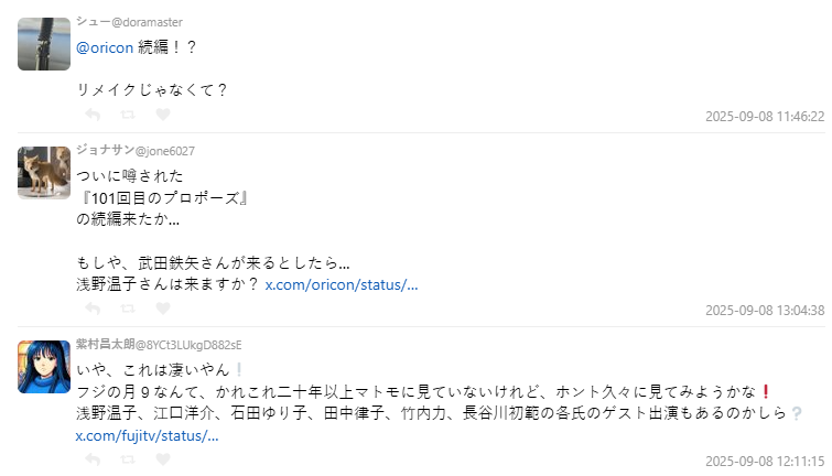 消息曝光後,許多戲迷驚訝表示:「不是翻拍,竟然是續集!?」「傳聞終於成真,但如果武田鐵矢回來,那淺野溫子會不會也出演呢?當年日劇的黃金組合現在還有機會重聚嗎?」