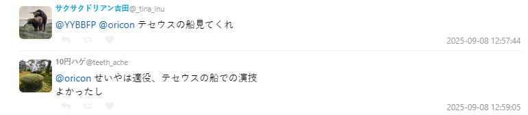 部分網友則替演技掛心:「せいや真的能演愛情劇嗎?模仿跟演戲是不一樣的。」不過也有人幫忙緩頰,指出他曾出演《忒修斯之船》,演技不算差。