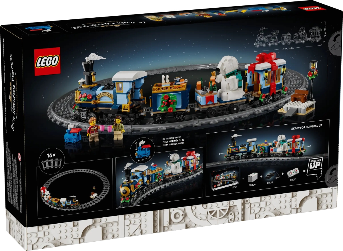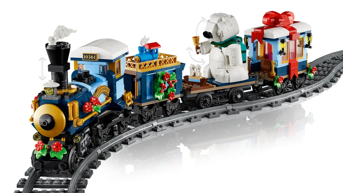 本作一共有 956 片零件,內容包含一套精美的火車、可連接成一圈的 16 個鐵軌零件、簡單的車站場景,以及四款人偶與豐富配件。火車部分包含煙囪能上下擺動的火車頭、煤水車(Coal Tender)、載著可愛北極熊模型的平車(flatcar)以及造型彷彿是禮物盒一般的尾車(end car)。搭配另售的 LEGO Powered Up 動力組件就能讓火車動起來然後看著它一整天(笑)!