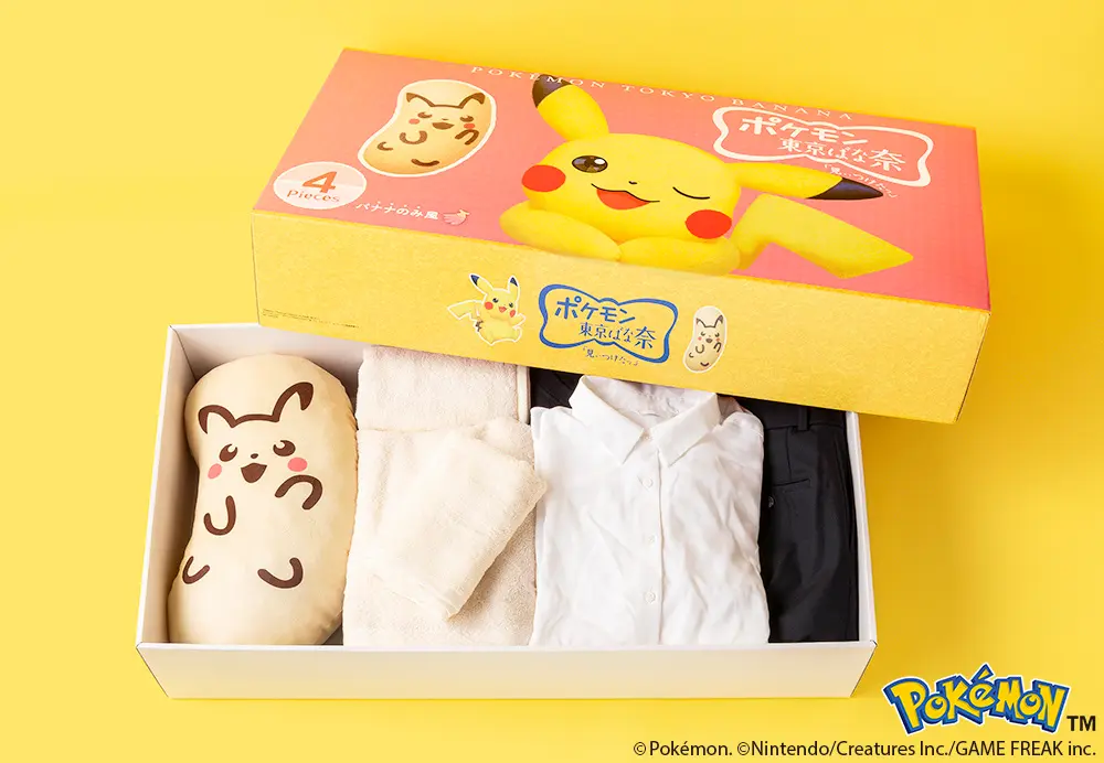 這次為了慶祝「寶可夢東京香蕉」誕生 5 週年,所以特別以首次推出的盒裝造型,還有當初印有可愛皮卡丘花紋的鬆軟海綿蛋糕為造型,特別製作成抱枕娃娃來抽獎。把「放大版的東京香蕉」變成抱枕套組送給粉絲!幸運中獎的 25 位可以獲得這個市面上買不到的限定抱枕。