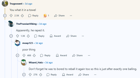 他原本上論壇詢問大家還有沒有辦法救回裡面的存檔,沒想到其他網友根本沒專心在問題上,反而狂笑他貼文裡把「wrapped(包住)」錯打成「rapped」,少一個字母就變成完全不同的意思,讓討論整個歪樓,重點根本沒人理。