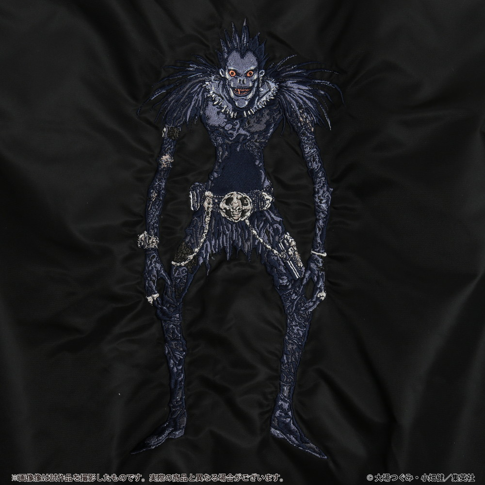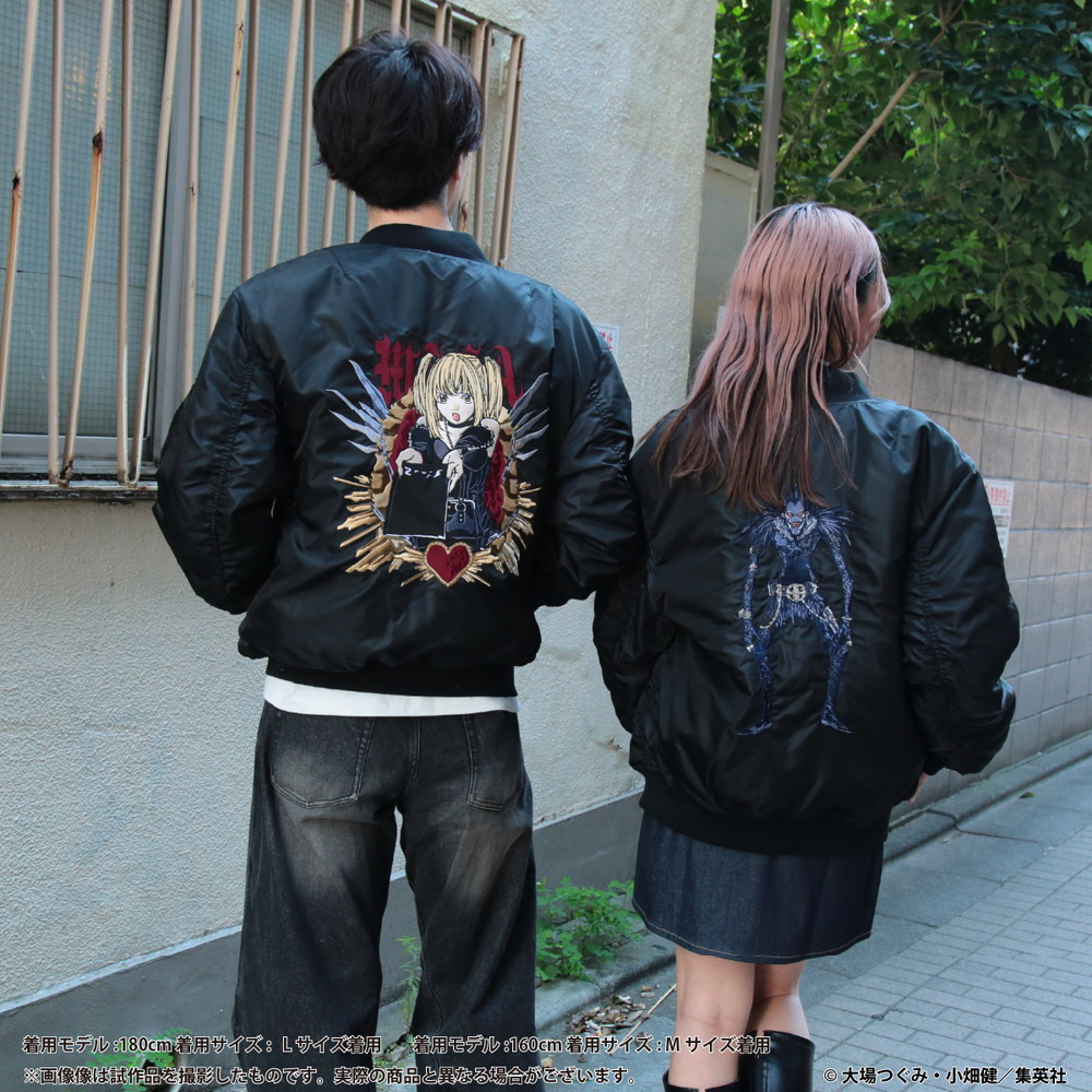 日本數字娛樂巨頭 DMM,旗下的販售眾多動漫作品周邊的 DMM Factory,近日宣布推出由大場鶇原作、小畑健作畫的少年漫畫《死亡筆記本》中的招牌死神「路克」與「彌海砂」為主題設計的 MA-1 飛行外套。售價為 29,700 日圓,預計於 2025 年 12 月正式發售。