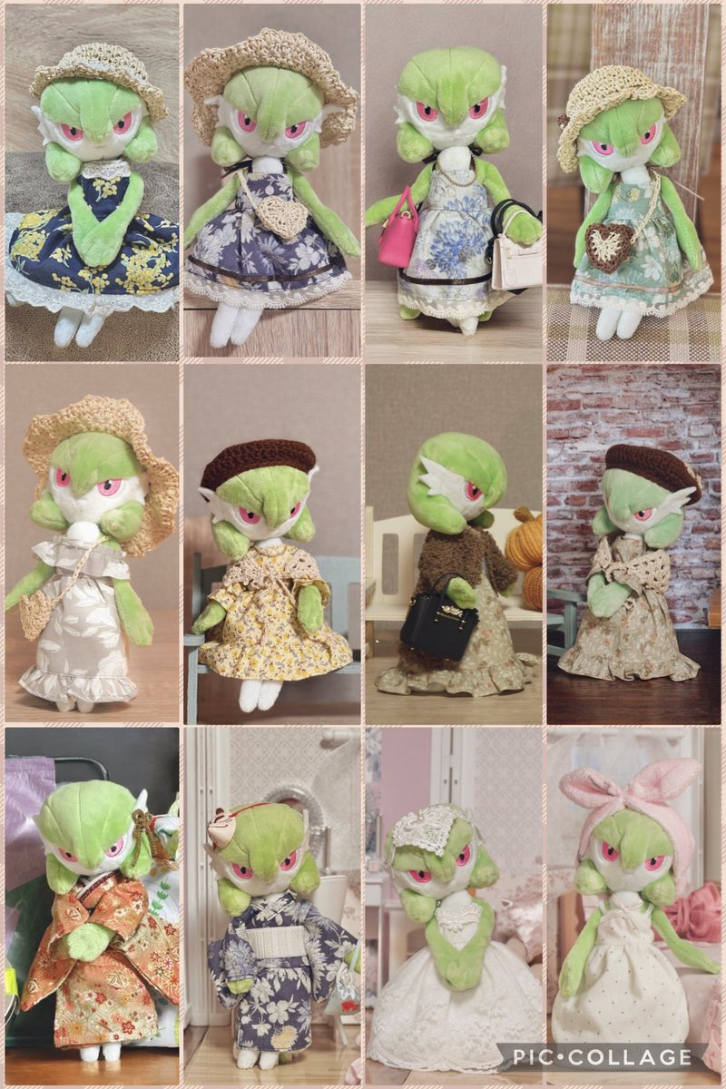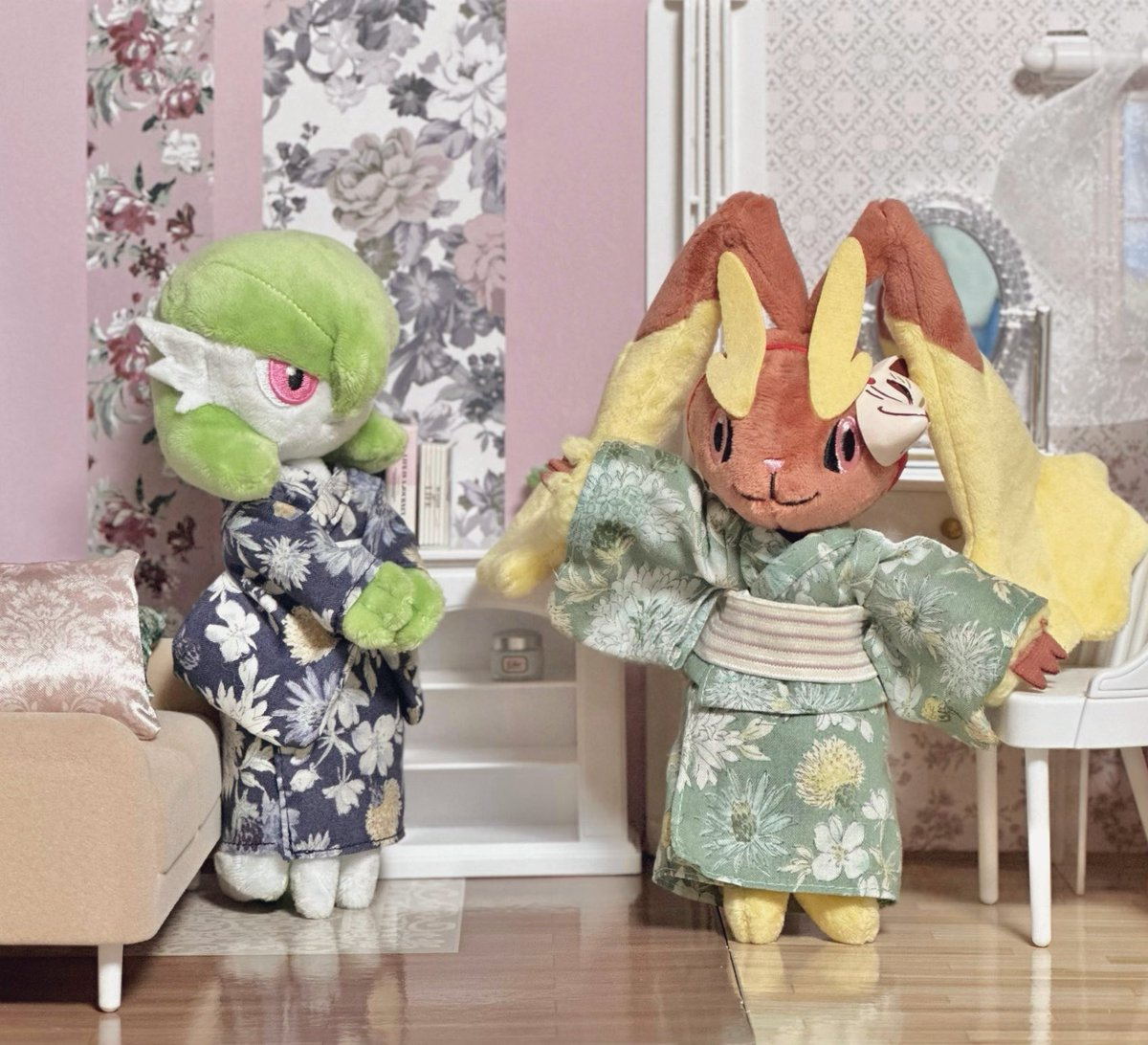 她使用的娃娃都是在寶可夢中心可以買到的迷你娃娃系列「Pokémon fit」,幾乎每一個寶可夢都可以買到的系列,尺吋迷你製作衣服也不會太有負擔。