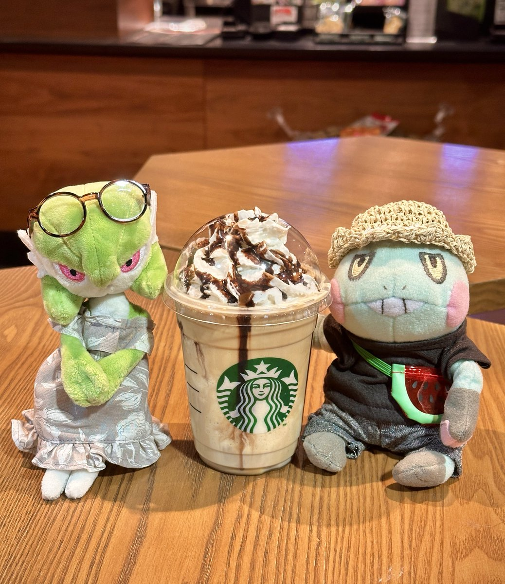 除了沙奈朵之外,她還很喜歡不良蛙,也製作不少娃娃的服裝給他們穿上,帶出去記錄生活。