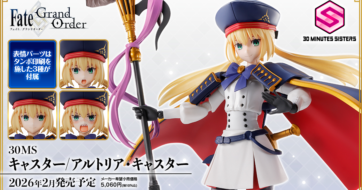 由日本 BANDAI SPIRITS 公司 HOBBY 事業部推出的原創機娘主題組裝模型『30 MINUTES SISTERS』系列,與迎來十周年的人氣手機遊戲《Fate/Grand Order》展開合作,正式發表了第一彈商品「Caster/阿爾托莉亞」預計於 2026 年 02 月發售的消息。