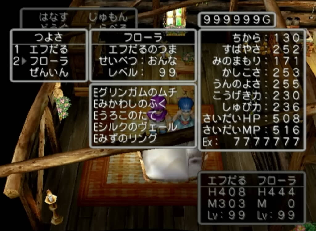 為了農 MP 最大值,需要靠「不可思議果實」( ふしぎなきのみ ) 來補,但那時期怪物根本不會掉,所以乾脆回存檔重刷幼年期。這個動作直接卡了一年八個月,因為果實掉落率只有 1/128,簡直快玩到心態炸裂,最後花了 250 小時湊到 105 顆,才算勉強安心。