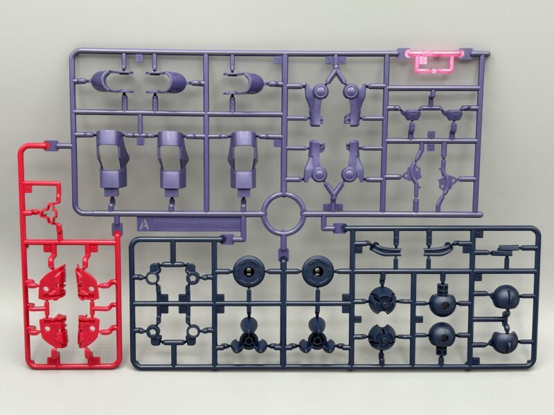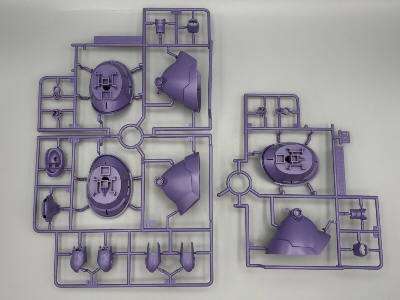 「HG 1/144 里克・德姆 蓋亞機/歐魯迪卡機(GQ)」運用萬代最新的分色分件技術、豐富成型色零件,再現極具份量的厚重機身。外裝甲部分便運用兩種紫色、深藍色、灰色大幅再現各部區塊,頭部、肩甲內側的紅色都以獨立分件呈現,但背部、腳掌底部的大量推進噴嘴僅有單一銀色零件呈現,噴嘴內側的紅色必須自行塗裝製作。