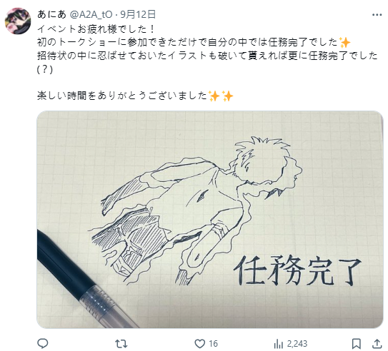 綠川光也在 X 上感謝所有來現場的粉絲,能這樣子跟大家互動,真的非常愉快。