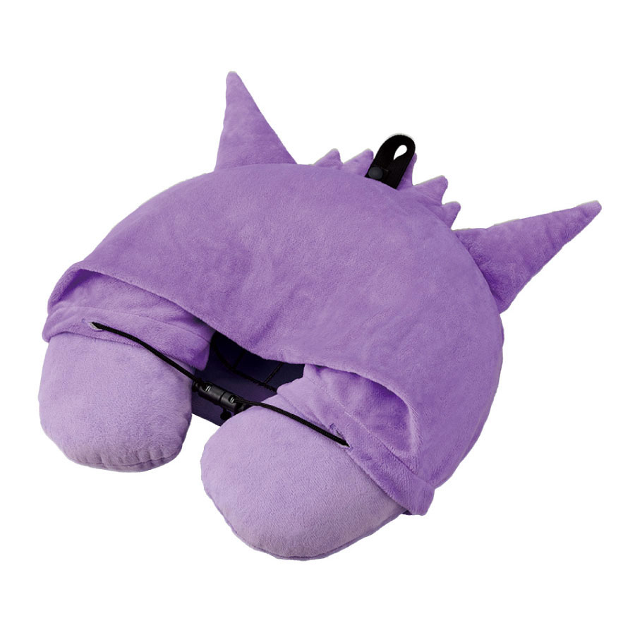 這次商品包含頸枕、護照套和行李箱綁帶,多款超實用設計同步登場,提供給寶可夢粉絲出外旅行的好搭配選擇,其中最吸引人的當然就是這款「耿鬼 連帽頸枕」了,讓你搭乘飛機的途中可以安穩...睡上一覺 XD。