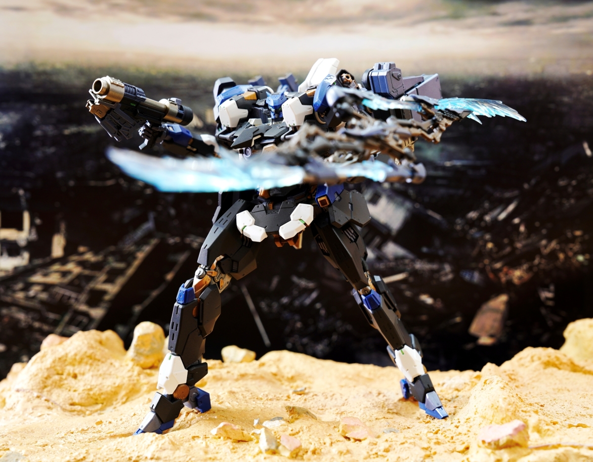 配件包括交換用左右手部配件,Needle Gun,Needle Missile,Needle Missile 展開用配件,Laser Slicer,Laser Slicer (展開),Laser Slicer 特效配件,核心展開用配件,實彈軌道收納狀態,實彈軌道展開用配件及 TAMASHII STAGE 用連接配件。論規格,根本是 Metal Robot 魂的級數!主体全塗裝之餘亦以黑白藍作主色。關節大部分是金屬,武器亦如遊戲中一樣豐富,亦可與同系列的 AC 互換增加可玩性!外形我的確沒有什麼批評了!