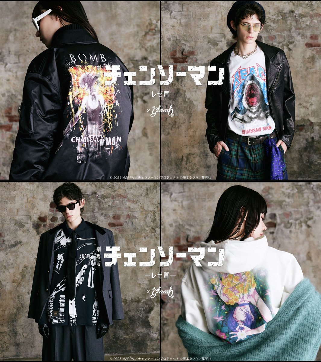 本次主要以全新的作品繪圖結合 glamb 的設計展現出截然不同的風貌,推出包含 : MA-1 飛行外套、滿版印刷襯衫、短 T、薄長 T、帽 T等款式,結合《鏈鋸人 蕾潔篇》登場的人物作為設計,供消費者選擇。